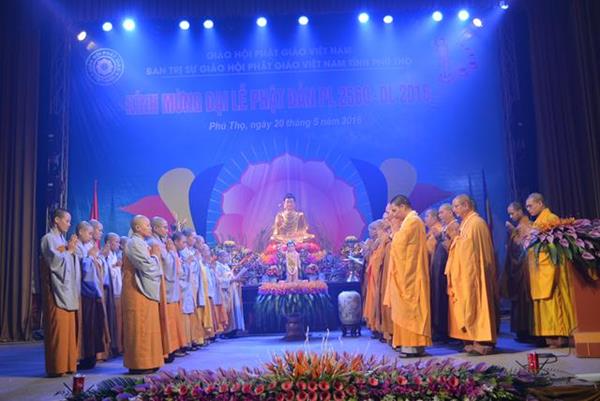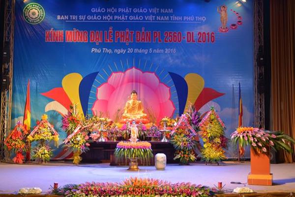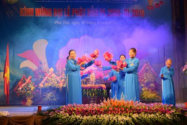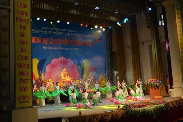 Tiếp theo chương trình, Ban Nghi Lễ tỉnh Phú Thọ đã cử hành Phần nghi lễ Phật đản, nghi thức tắm Phật. Những chiếc bong bóng bay và những chú chim bồ câu tượng trưng cho hòa bình được thả lên trời cao rộng với lời cầu nguyện quốc thái dân an, chào mừng đại hội đại biểu HĐND các cấp, đã kết thúc tốt đẹp chương trình đại lễ Phật đản PL. 2560 – DL. 2016 của phật giáo tỉnh Phú Thọ trong tinh thần đại hoan hỷ, đại đoàn kết, với biềm hỷ lạc vô biên. Dư âm Đại lễ Phật đản sẽ vang vọng mãi trong lòng người con Phật.