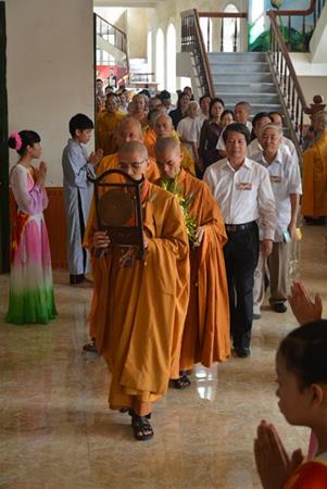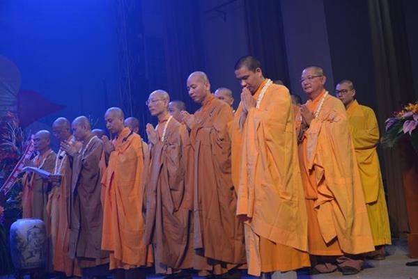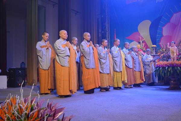 Buổi lễ được diễn ra trong trong không gian lắng động, trang nghiêm, mở đầu với tiếng niệm hồng danh Đức Bổn Sư Thích Ca trầm hùng, lễ chào quốc kỳ, đạo kỳ, hội chúng đã lắng lòng dành 1 phút nhập từ bi quán để tri ân chư tôn đức thánh tử đạo, các anh hùng liệt sĩ đã hy sinh vì nền độc lập tự do của dân tộc .