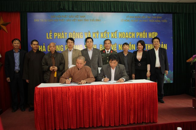 Tại buổi lễ, đại diện Sở NN&PTNT cùng với Giáo hội Phật giáo tỉnh Thái Bình đã ký kết và thông qua kế hoạch phối hợp, thả giống phóng sinh bảo vệ nguồn lợi thủy sản. Theo đó, hai bên sẽ phối hợp thực hiện kế hoạch đến hết ngày 31/12/2020. Hàng năm, sẽ tổ chức các buổi lễ thả giống phóng sinh điểm trong các ngày lễ lớn của Phật giáo như: lễ Nguyên tiêu, lễ Phật đản, lễ Vu Lan; xây dựng chương trình hành động bảo vệ nguồn lợi thủy sản thông qua các buổi thuyết giảng, các Đại lễ, tuyên truyền thông qua các trang báo….