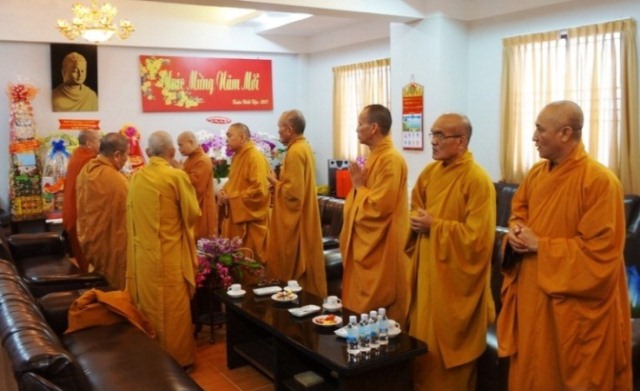 Chư tôn đức Ban Thường Trực BTS GHPGVN TP.HCM gồm HT.Thích Thiện Tâm – Phó Chủ Tịch GHPGVN Tp.HCM , Phó Ban BTS GHPGVN TP.HCM, HT.Thích Minh Thông – Phó Ban kiêm Trưởng Ban Tăng Sự Phật Giáo TP.HCM; HT.Thích Thiện Đức – Phó Ban Trị Sự GHPGVN TP.HCM; HT. Thích Giác Hà – Phó Ban Trị Sự Giáo Hội Phật Giáo TP.HCM… đã đến thăm và chúc tết HT.Thích Đức Nghiệp – Phó Pháp Chủ HĐCM GHPGVN, HT.Thích Hiển Pháp, Phó Pháp chủ HĐCM GHPGVN ; HT.Thích Trí Quảng – Phó Pháp Chủ HĐCM GHPGVN, Trưởng Ban Trị sự GHPGVN TP.HCM; HT.ThíchViện Giác – Thành Viên Hội Đồng Chứng Minh GHPGVN, HT.Thích Hiển Tu – Phó Thư ký Hội đồng Chứng minh GHPGVN, HT.Thích Thiện Nhơn – Chủ Tịch HĐTS GHPGVN; HT.Thích Thiện Pháp – Phó Chủ Tịch Thường Trực kiêm Trưởng Ban Tăng Sự GHPGVN cùng chư tôn đức VP II TƯ GHPGVN.
