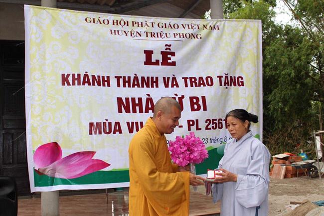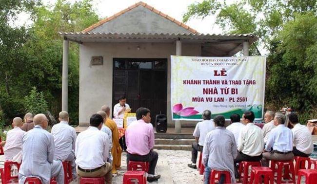 Phát biểu tại buổi lễ Đại Đức Thích Nguyên Mãn Trưởng Ban Tri Sự củng là người đưa ra ý tưởng vận dong xây nhà Từ Bi, rất phấn khởi hoan hỷ, mô hình xây nhà Từ Bi cho những hộ đặc biệt khó khăn dược tiến hành vào đại lễ mùa Phật Đản và hôm nay là mùa Vu Lan thì 2 tren 3 căn nhà được hoàn thiện để đưa vào sử dụng, mỗi căn nhà trị giá trên 50 triệu đồng, nguồn vốn được van dong tu moi noi và Đại Đức cũng cho biết là cứ mỗi năm sẻ tiến hành Phật sự trên để giúp bà con vơi đi sự lo lắng trong những mùa mua bảo,