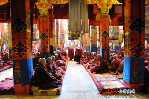 Gần 1000 chư Tăng tại chùa Lạp Bốc Lăng – huyện Hạ Hà, tỉnh Cam Túc đồng mặc niệm cầu nguyện