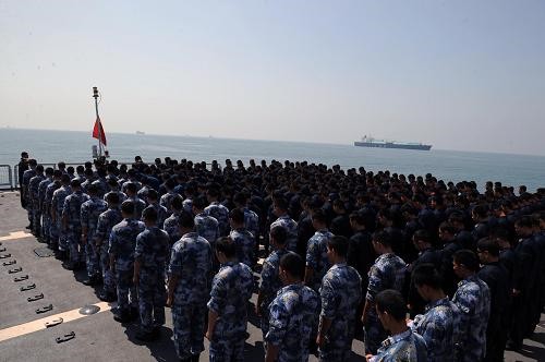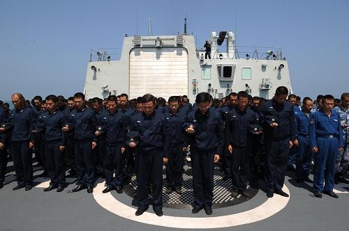 Đội biên phòng Hải quân hộ tống tàu thuyền cử hành nghi thức mặc niệm