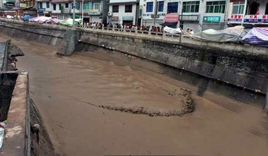 Vào lúc 23 giờ ngày 7 rạng sáng 8/8/2010, tại vùng địa chấn Vấn Xuyên, phía đông bắc bộ, huyện Chu Khúc thuộc châu tự trị dân tộc Tạng, Cam Nam, tỉnh Cam Túc đột nhiên nổi lên trận mưa dữ dội. Cơn mưa kéo dài hơn 40 phút, lượng mưa tối đa 90mm, gây ra cơn lũ dẫn đến sụt lỡ đất đá trầm trọng liên quan đến hai con kênh, khoét rộng khoảng 500m, dài khoảng 5km, bao quát thôn Nguyệt Viên, trấn Thành Quan, huyện Chu Khúc đã thành bình địa, nhân dân cư trú tại vùng này gần 2000 người.