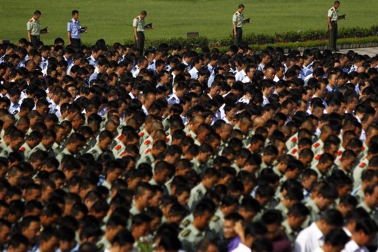 Hàng vạn người tưởng niệm các nạn nhân huyện Chu Khúc dưới cờ tại Vạn Lý Trường Thành