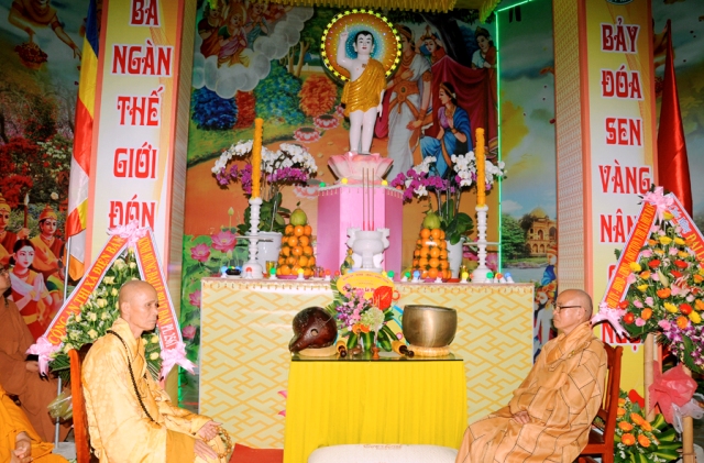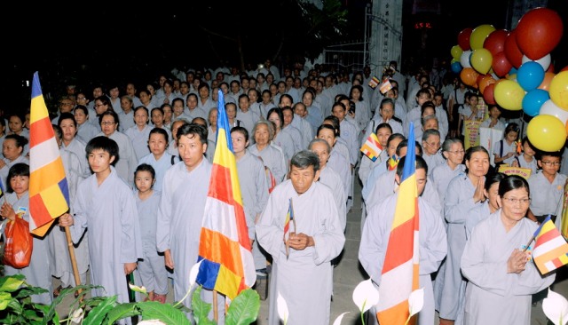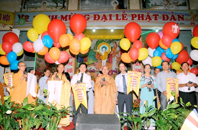 Sau đó, cử hành nghi lễ Phật đản truyền thống trong không khí trang nghiêm thanh tịnh và thả bong bóng hòa bình cầu quốc thái dân an, chúng sanh an lạc.