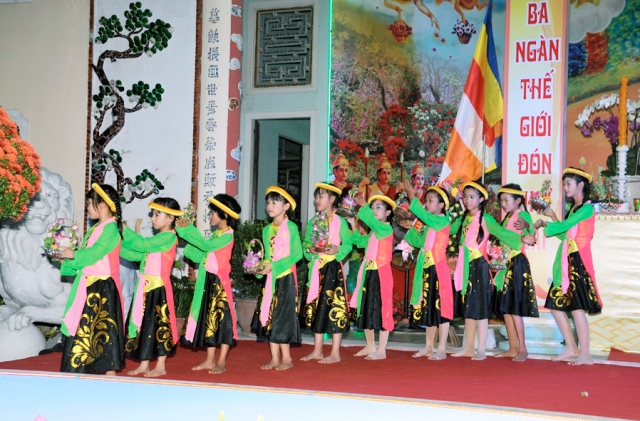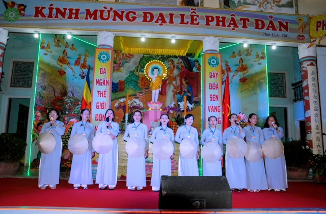 Sau khi đại lễ Phật Đản kết thúc, các em đoàn sinh GĐPT Điện Bàn biểu diễn văn nghệ cúng dường.
