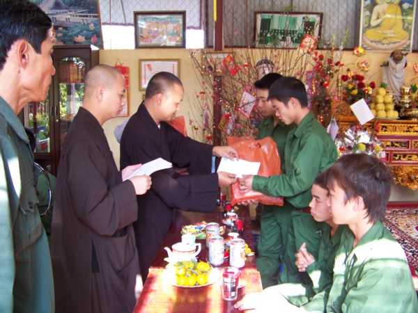 Trong điều kiện còn có nhiều khó khăn nhưng nhiều Tăng – Ni, Phật tử đã phát huy và thể hiện tinh thần Nhập Thế của người con Phật để đem ánh sáng Giáo lý của Phật Giáo vào cuộc đời, tích cực dấn thân tham gia vào các hoạt động Từ Thiện Nhân Đạo chính là thực hiện hạnh nguyện “Từ Bi Cứu Khổ” của Bồ Tát Đạo nhằm chia xẻ những khó khăn trong cuộc sống, phù hợp với truyền thống văn hoá dân tộc "Thương người như thể thương thân", "Một miếng khi đói bằng một gói khi no", Tăng – Ni đã tự nguyện đóng góp và kêu gọi tín đồ Phật tử ủng hộ tiền của cho đồng bào lũ lụt trong các đợt vận động tại địa phương, tặng quà tết cho trẻ em khuyết tật, giúp đỡ và nuôi dưỡng trẻ nhiễm chất độc Da Cam, giúp đỡ học sinh nghèo vượt khó, ủng hộ Phật Giáo xây nhà tình nghĩa, nhà "Đại Đoàn Kết", nhà “Chữ Thập Đỏ”.