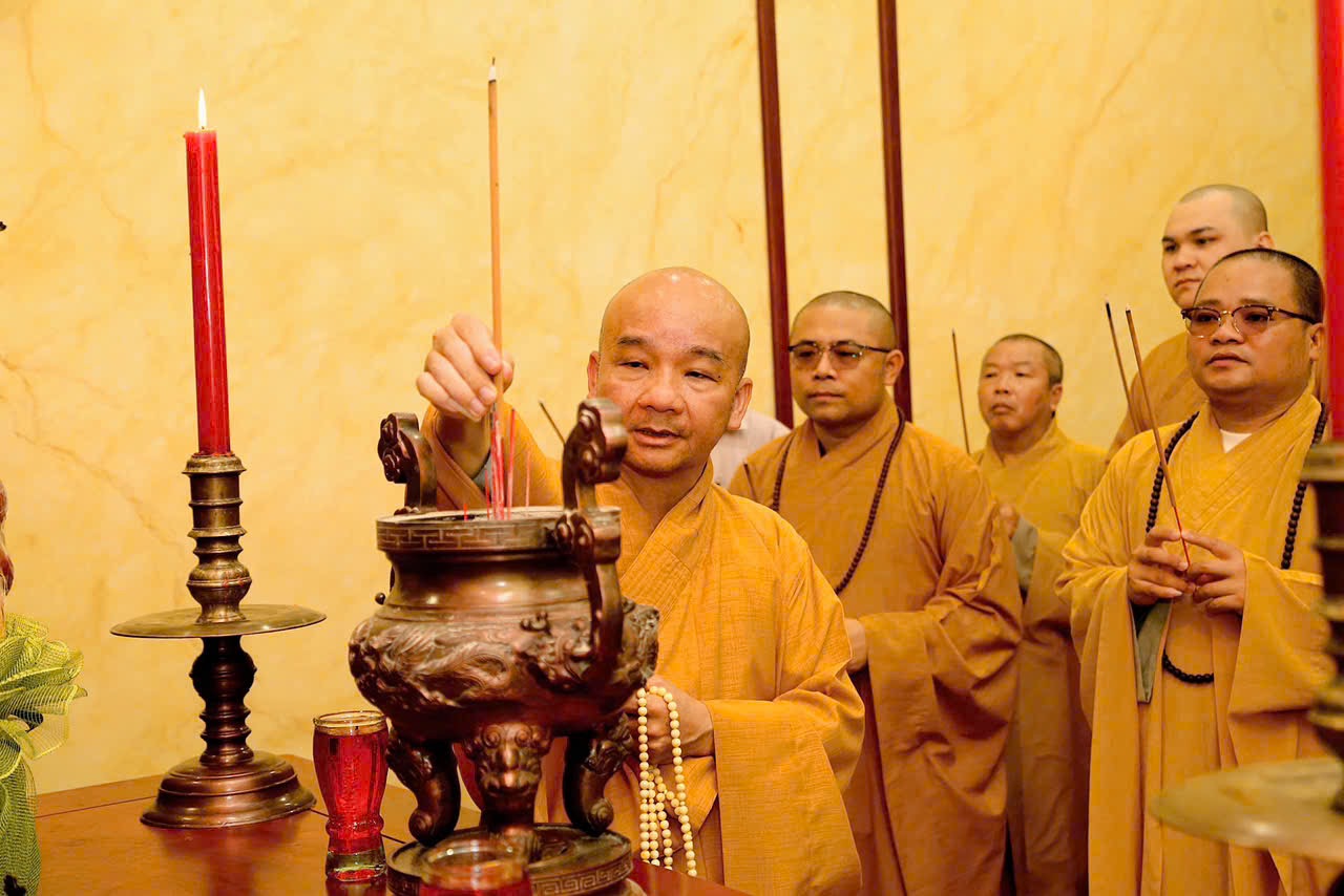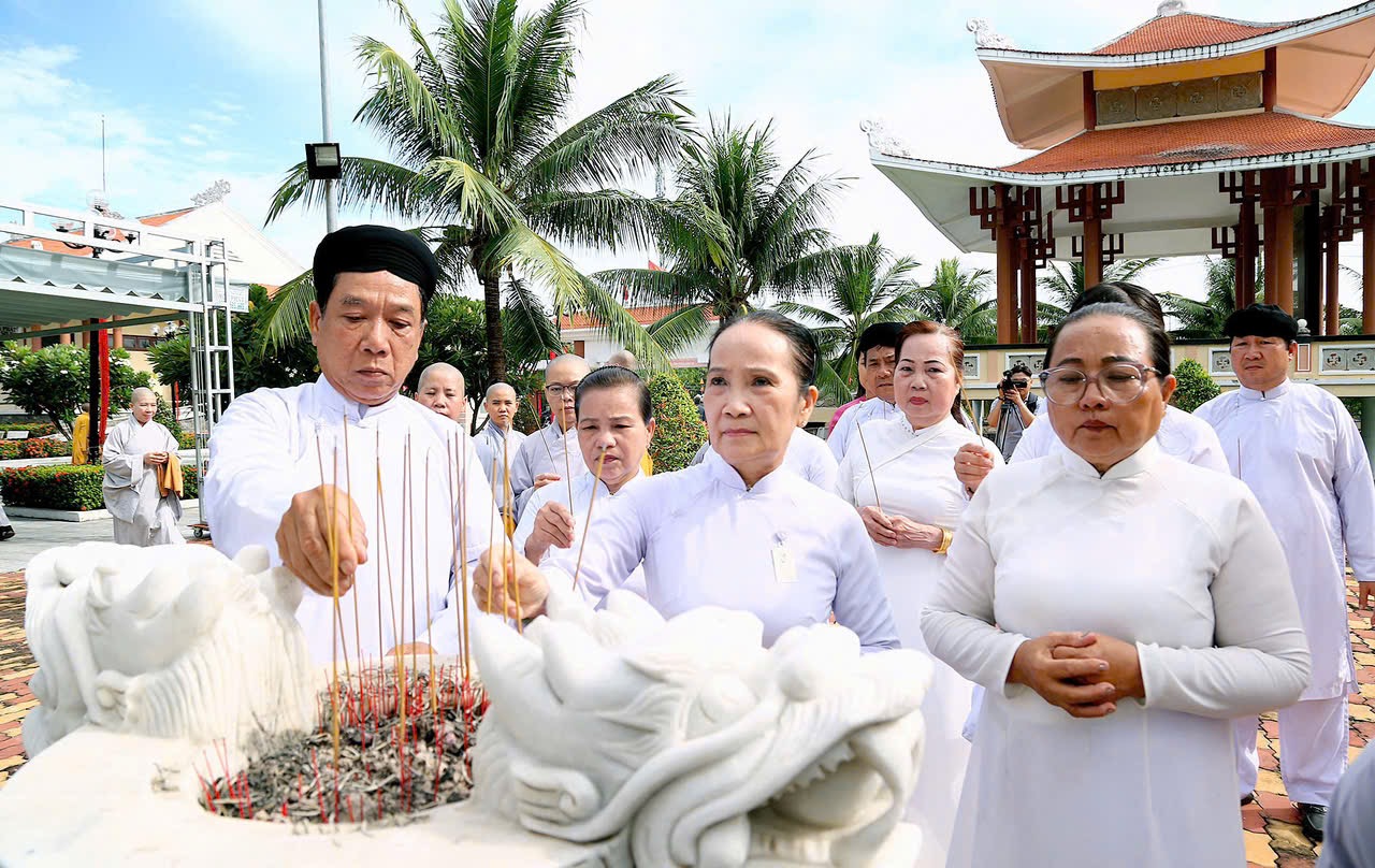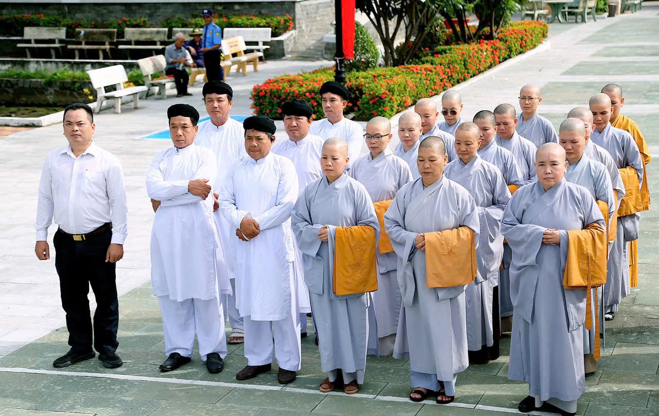 Chư tôn đức dâng hương tưởng niệm nơi thờ Chủ tịch Hồ Chí Minh tại Khu truyền thống Cuộc tổng tiến công và nổi dậy xuân Mậu thân năm 1968.