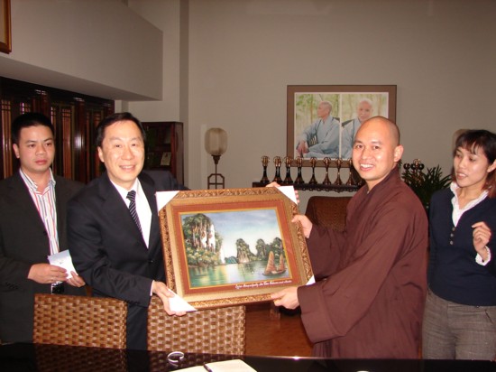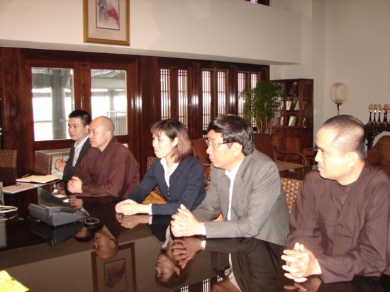 Đi cùng đoàn có Đại đức Thích Tâm Hải – ủy viên báo chí Ban Văn hóa Trung ương GHPGVN, thư ký Tòa soạn báo Giác Ngộ cùng đại diện của Công ty Cổ phần Viễn thông – Truyền thông An Viên.