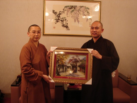 Đại đức Thích Đức Thiện tặng quà lưu niệm tới BLTV