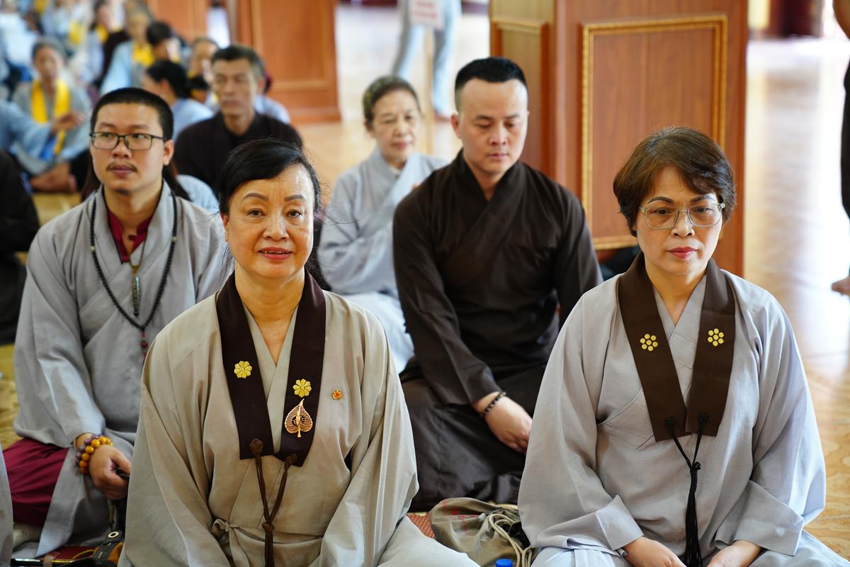 Tháp tùng phái đoàn còn có chư Tôn đức Tăng Ni lớp Đào tạo Giảng sư khu vực phía Bắc, quý Phật tử Đạo tràng Pháp Hoa Đồng Xuân, Đạo tràng chùa Sủi và Đạo tràng Mật Tông.