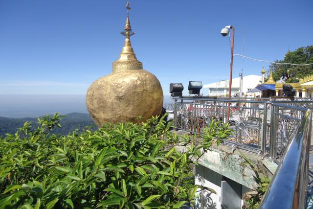 Kyaikhtiyo nằm trên ngọn núi cao khoảng 110m so với mặt biển, tâm điểm chính là “tảng đá thiêng”, tảng đá này nằm chồng lên tảng đá kia – giữa hai tảng đá có khe nứt – người ta tin rằng tảng đá này trụ vững qua nhiều năm tháng vì có sợi tóc của Đức Phật. Trên đường về – đoàn ghé tham quan Bạch Tượng và Tượng Phật ngồi cao 6m lớn nhất Myanmar được tạc bằng đá cẩm thạch non mầu trắng có vân nguyên khối.