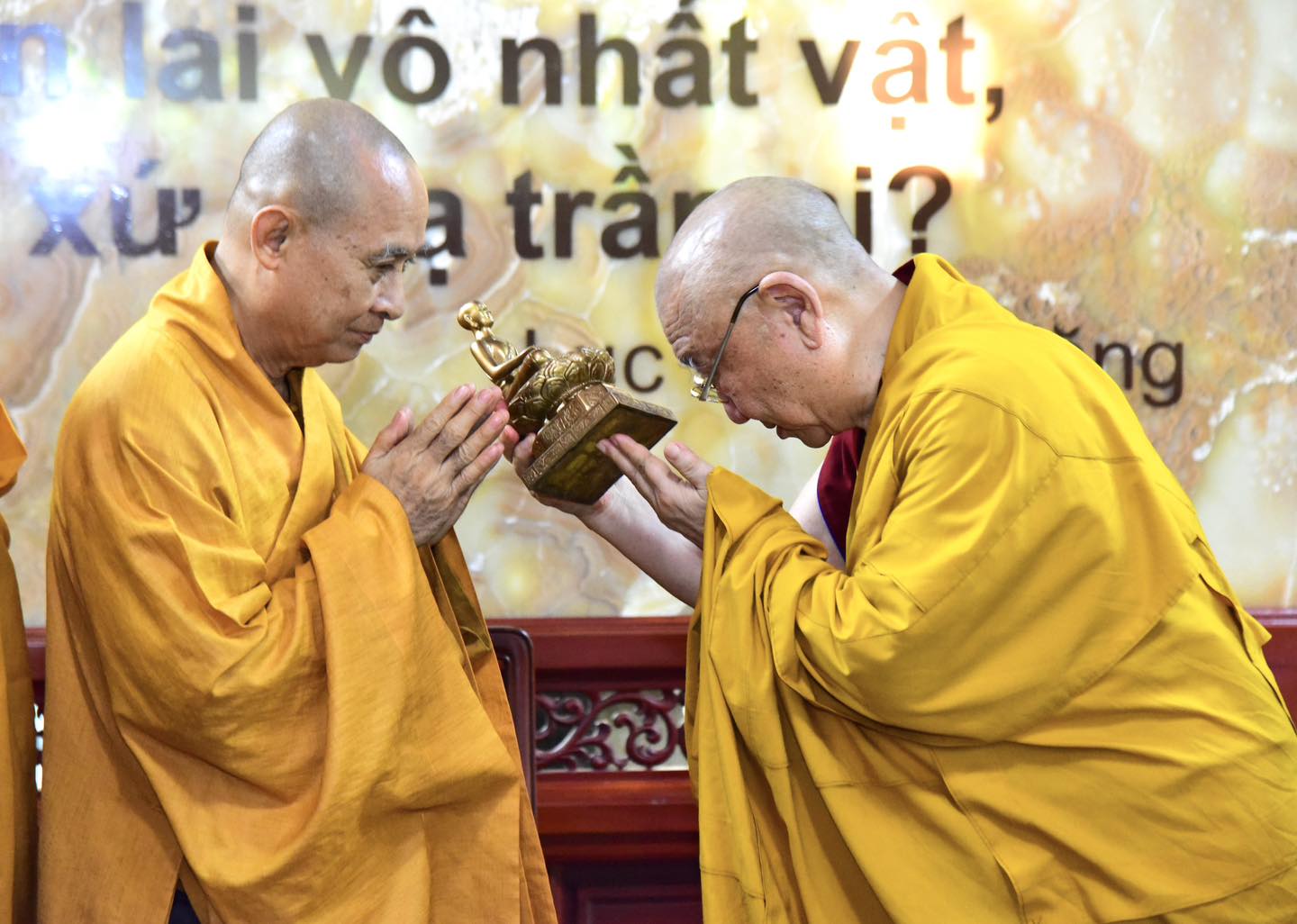 Tiếp đoàn có HT. Thích Thông Hạnh – Phó Ban Quản trị Thiền phái Trúc Lâm, Phó Trụ trì Thiền viện Thường Chiếu; TT. Thích Nhật Từ – Uỷ viên Thường trực HĐTS, Phó Trưởng Ban Thường trực Ban Phật giáo quốc tế Trung ương; TT. Thích Quang Tuệ – Thư ký Thiền viện Thường Chiếu.