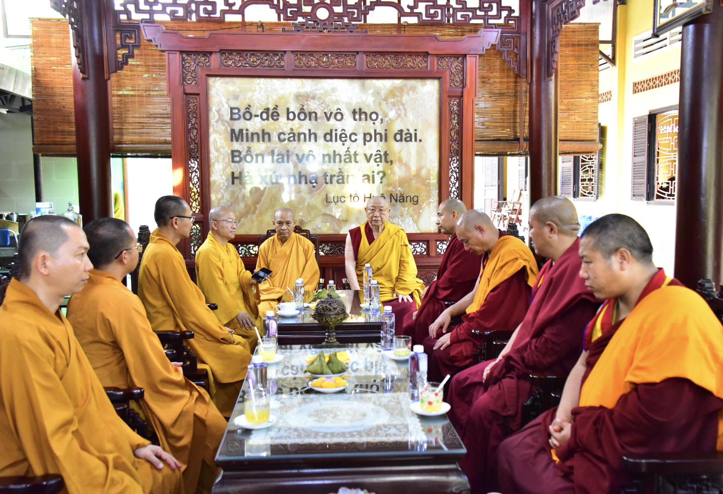 Tại buổi gặp, đại lao chư tôn đức Ban Quản trị Thiền phái, TT. Thích Quang Tuệ giới thiệu khái lượt lịch sử hình thành và phát triển cũng như cơ sở tự viện trong và ngoài nước của Thiền phái. Tại buổi gặp, HT. Gosok Rinpoche bày tỏ ngưỡng mộ đối với sự phát triển của Phật giáo Việt Nam nói chung và Thiền phái Trúc Lâm Việt Nam nói riêng.