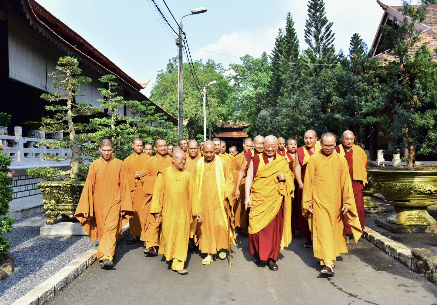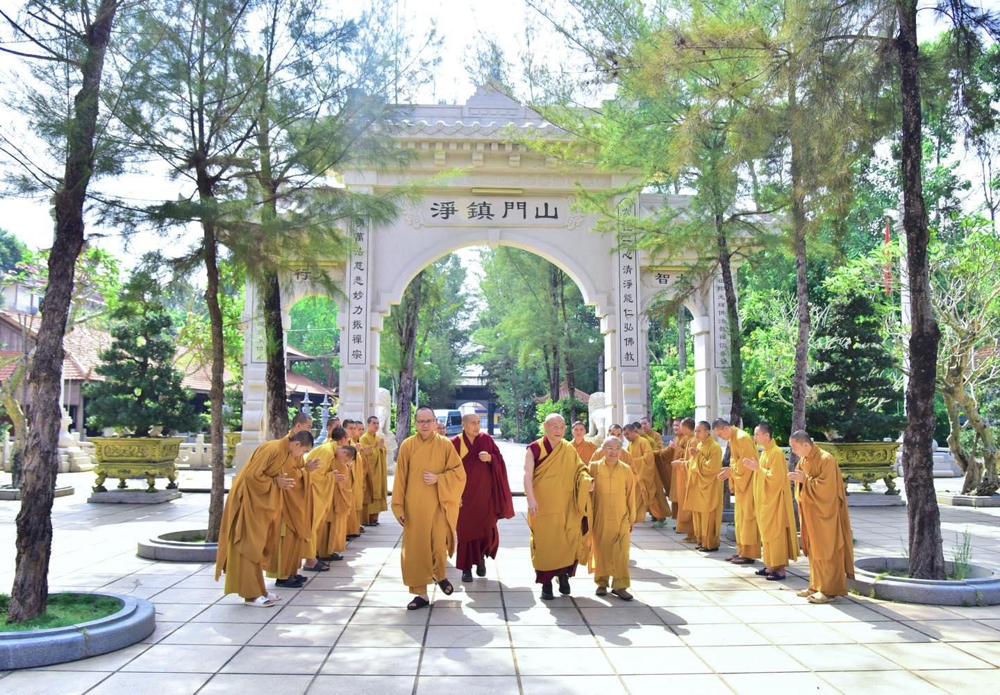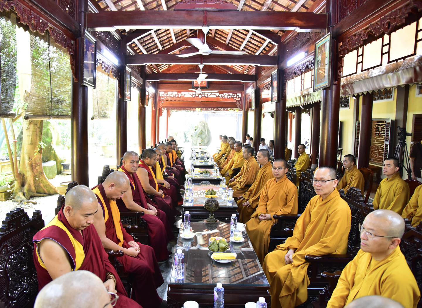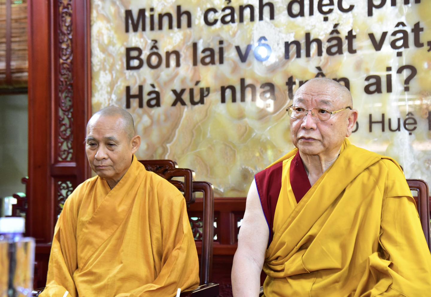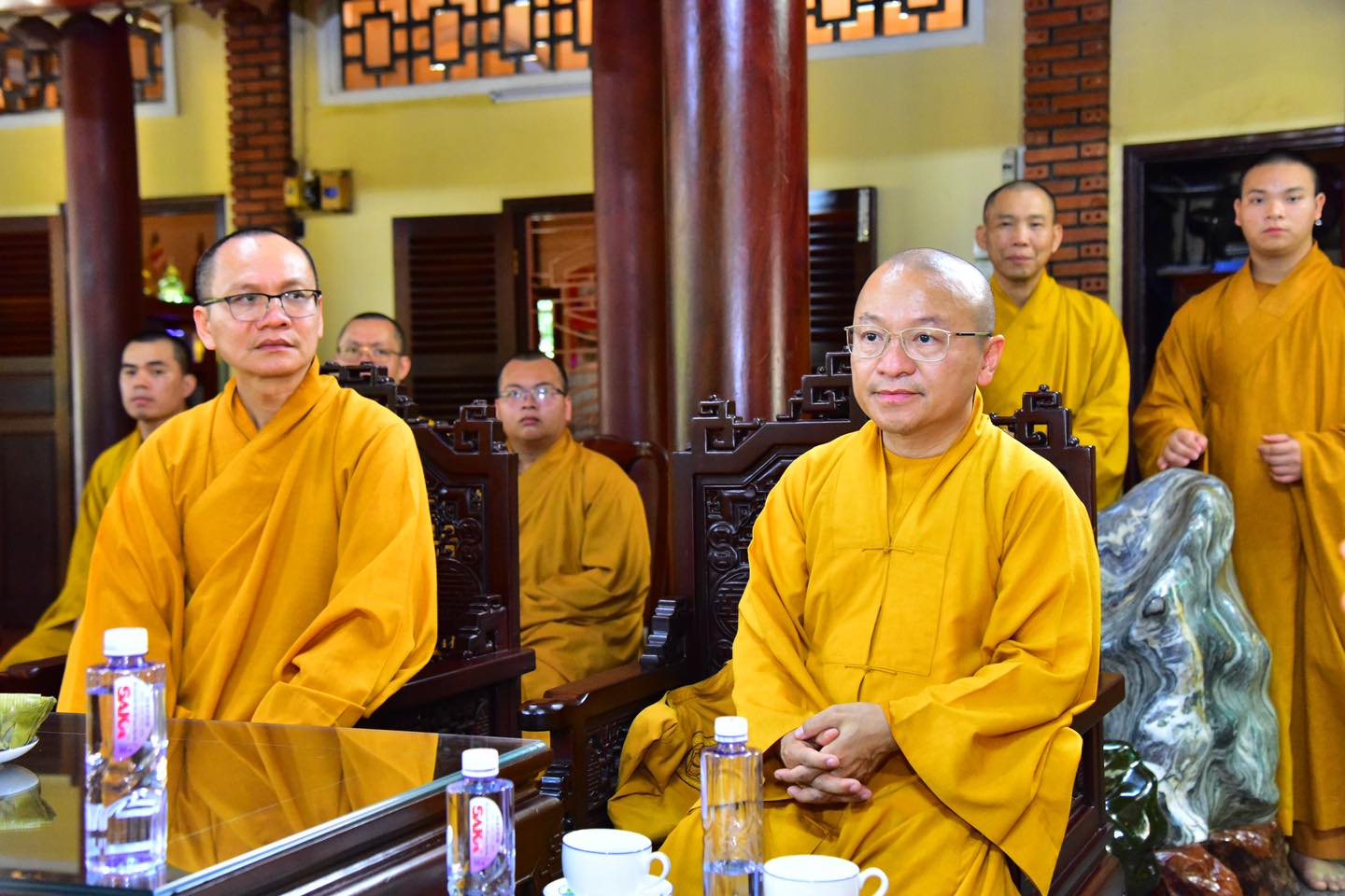 Tiếp đoàn có HT. Thích Thông Hạnh – Phó Ban Quản trị Thiền phái Trúc Lâm, Phó Trụ trì Thiền viện Thường Chiếu; TT. Thích Nhật Từ – Uỷ viên Thường trực HĐTS, Phó Trưởng Ban Thường trực Ban Phật giáo quốc tế Trung ương; TT. Thích Quang Tuệ – Thư ký Thiền viện Thường Chiếu.