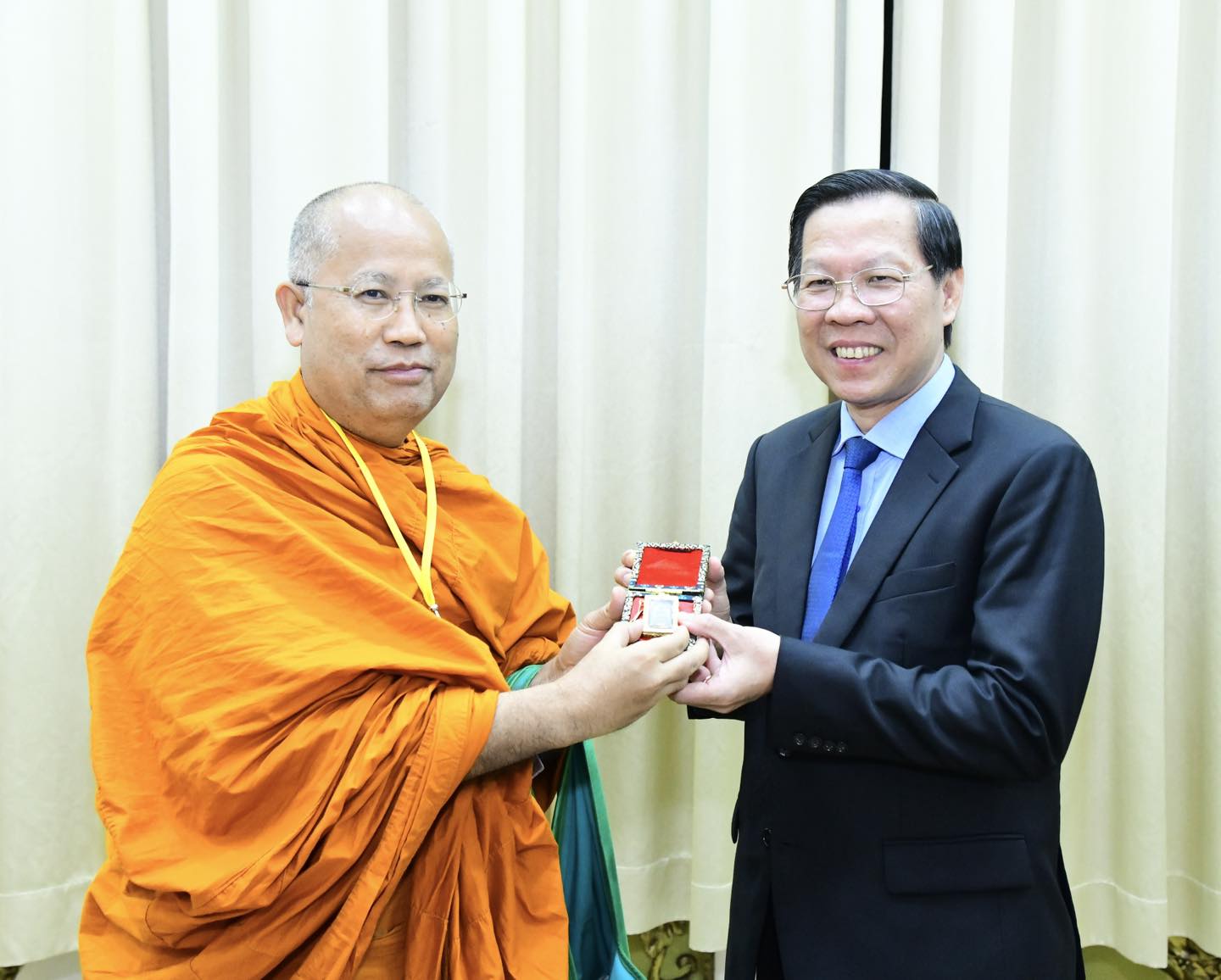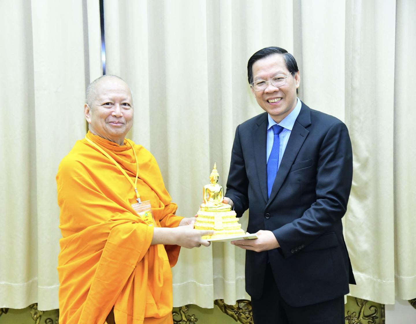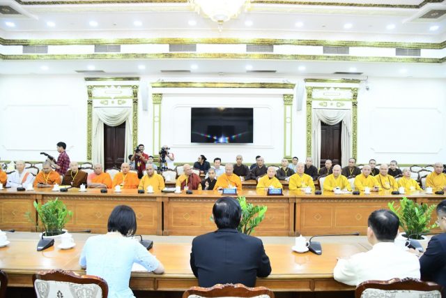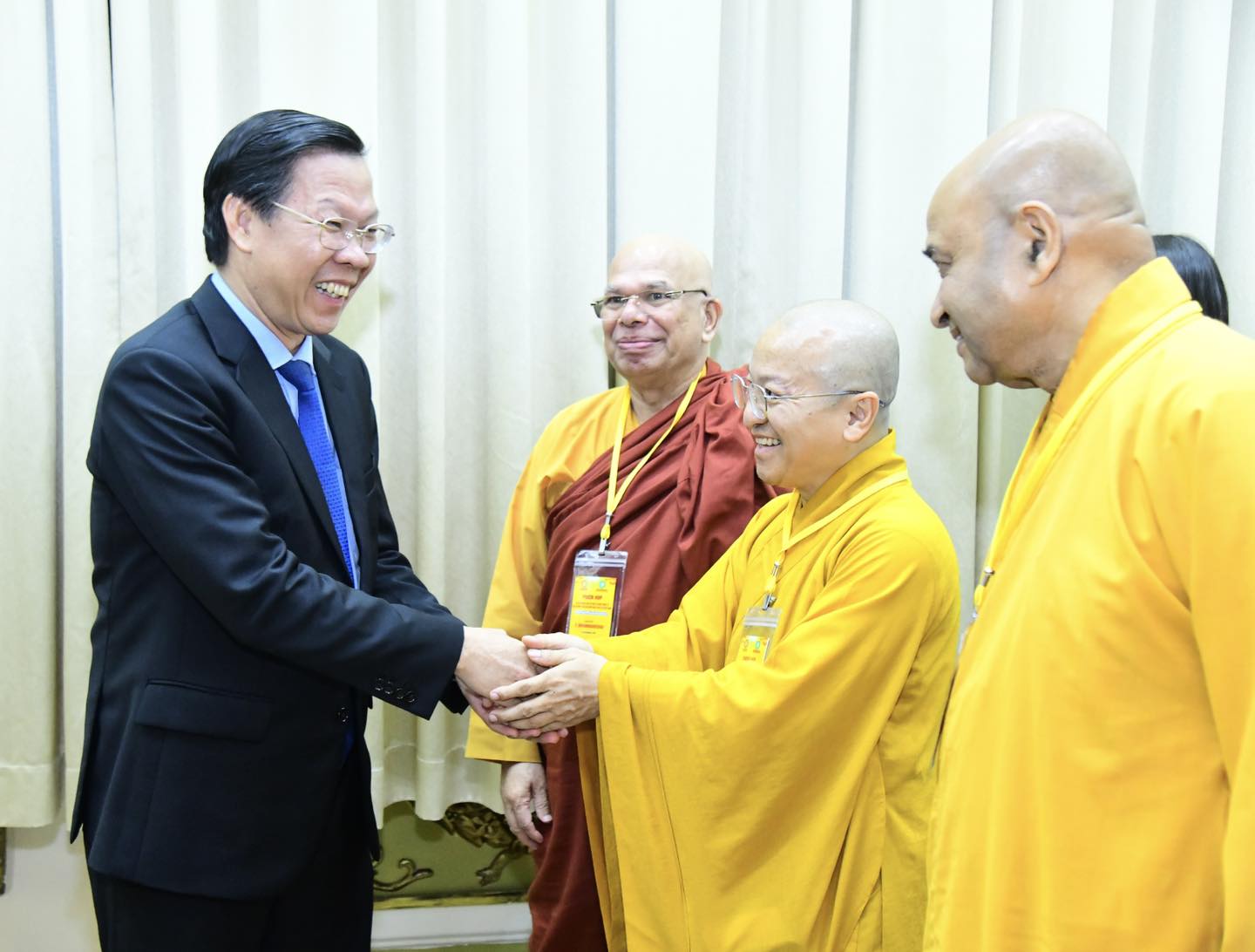 Phát biểu với đoàn, Chủ tịch UBND Thành phố chào mừng đoàn có chuyến thăm, làm việc tại TP.HCM. Ông tin tưởng Phật giáo Việt Nam sẽ đóng góp nhiều hơn nữa cho xã hội và cho cộng đồng quốc tế theo truyền thống nhập thế và phụng sự mà Đức Phật chủ trương.
