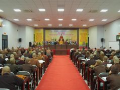 Trân trọng đón tiếp phái đoàn, Thượng tọa Thích Thanh Vân – Ủy viên HĐTS, Phó trưởng Ban nghi lễ TW GHPGVN, Trưởng BTS GHPGVN tỉnh Hải Dương đã giới thiệu sơ lược về tình hình tu học trong 3 tháng an cư kiết hạ của 240 hành giả trong hạ trường. Qua đó, Thượng tọa đã nhắc lại về quá trình hình thành và phát triển của Ni đoàn thời Đức Phật còn tại thế. Đồng thời, cũng ôn lại về những tấm gương của chư vị Ni tiền bối để tán thán hạnh tu của Ni chúng. Từ đây, Thượng tọa nhắn nhủ chư Tôn đức Ni giữ gìn giới luật tinh chuyên, cố gắng nỗ lực hoằng dương Phật pháp để đem lại lợi lạc cho chúng sinh.