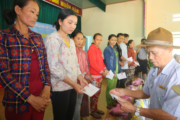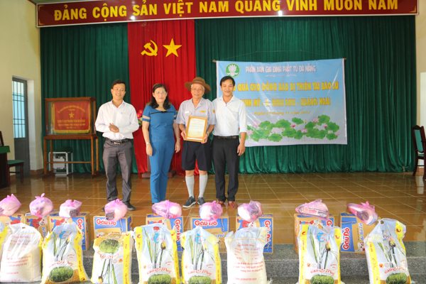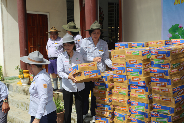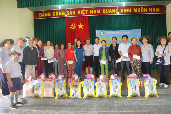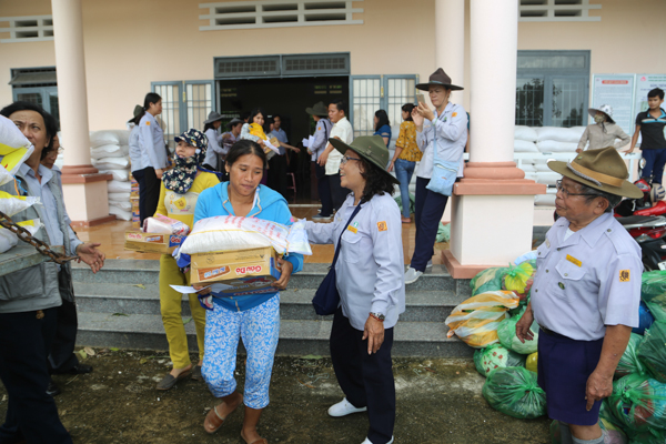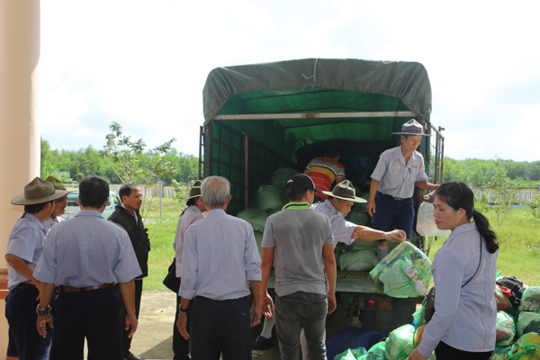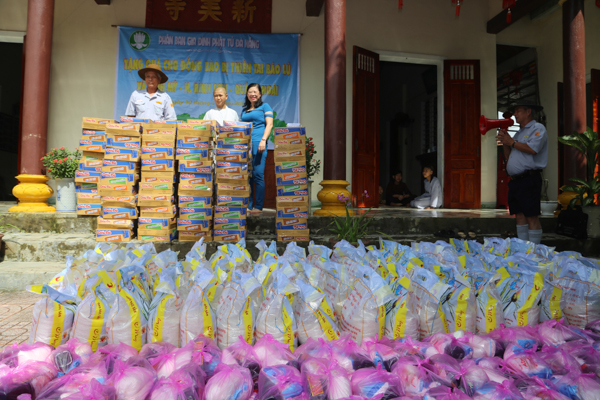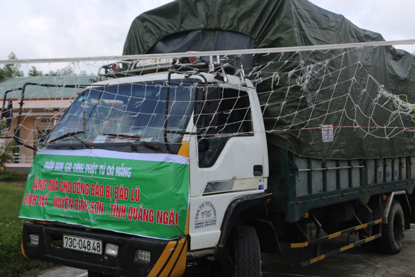 Đoàn đã trao tặng hơn 110 suất quà đến các huynh trưởng, đoàn sinh GĐPT huyện Bình Sơn và 200 suất quà đến các hộ gia đình có hoàn cảnh khó khăn và bị ảnh hưởng nặng nề trong đợt lũ lụt vừa qua. Đồng thời đoàn đã đến đảnh lễ Tam Bảo, cúng dường tịnh tài tịnh vật tại chùa Tân Mỹ (xã Bình Mỹ, huyện Bình Sơn, tỉnh Quảng Ngãi), thăm và hỗ trợ gia đình anh Võ Văn Thêm (27 tuổi) bị thiệt mạng trong đợt lũ vừa qua để 2 lại con nhỏ mới 18 tháng tuổi. Tổng kinh phí cho chuyến công tác từ thiện là 140 triệu đồng.