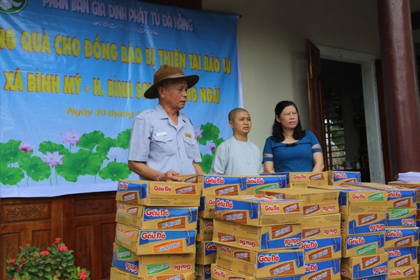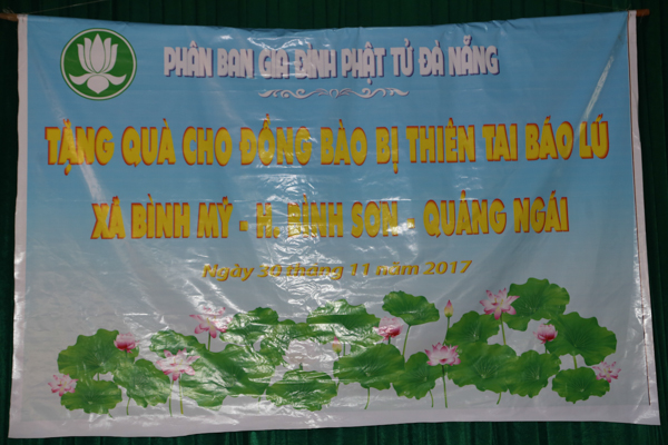 Ngày 30/11/2017 (13/10 Đinh Dậu), phái đoàn Ban hướng dẫn Phân ban GĐPT Đà Nẵng do HTr cấp Dũng Thị Sơn Huỳnh Ngọc Lâm – Phó trưởng ban hướng dẫn GĐPT TƯ, Trưởng ban hướng dẫn Phân ban GĐPT Đà Nẵng làm trưởng đoàn đã tổ chức chuyến công tác từ thiện cứu trợ đồng bào bị lũ lụt tại xã Bình Mỹ, huyện Bình Sơn, tỉnh Quảng Ngãi.