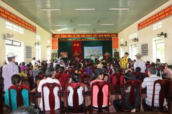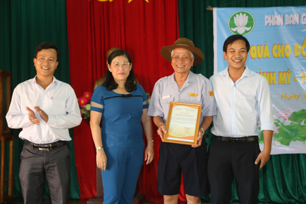 Huynh trưởng cấp Tấn Nguyên Thường Trần Khanh – Phó trưởng ban hướng dẫn Phân ban GĐPT tỉnh Quảng Ngãi và bà Hoài Trung – Phó trưởng ban Tôn giáo tỉnh Quảng Ngãi tham gia hỗ trợ cùng đoàn đã có lời phát biểu cảm ơn nghĩa cử cao đẹp của GĐPT Đà Nẵng chia sẻ cùng anh chị em áo lam và bà con xã Bình Mỹ, huyện Bình Sơn, tỉnh Quảng Ngãi.