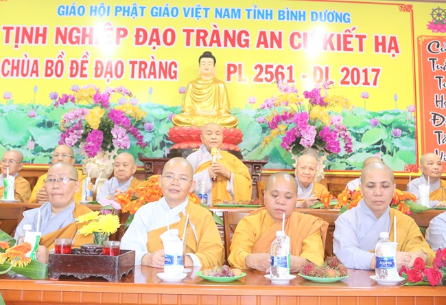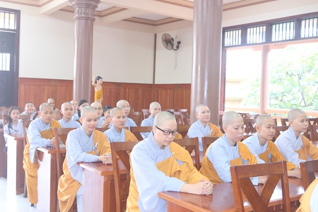 Bắt đầu buổi viếng thăm, Ni trưởng Thích nữ Pháp Như, Phó Ban Trị sự, Trưởng Phân Ban Ni giới tỉnh Bình Dương đã phát biểu khích lệ Ban chức sự và các em Ni sinh của Trường Trung Cấp Phật học tỉnh Bình Dương Khóa IV. Ni trưởng bày tỏ lòng vui mừng vì Ni sư Thích nữ Từ Thảo đã thực hiện đúng tinh thần chỉ đạo của Ban Trị sự GHPGVN tỉnh Bình Dương và Qui luật thiền môn, là tổ chức được điểm an cư kiết hạ riêng cho Ni sinh Trường Trung Cấp Phật học tỉnh Bình Dương khóa IV.