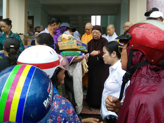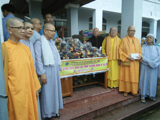 Trên tinh thần Từ Bi của những người con Phật, trước thiệt hại của bà con do thiên tai gây ra, sáng ngày 05/10/2017 (16/8 Đinh Dậu), phái đoàn Phân ban Ni giới GHPGVN Tp Đà Nẵng do Ni trưởng Thích Nữ Diệu Cảnh – UV HĐTS GHPGVN, Trưởng ban đặc trách Phân ban Ni giới Tp Đà Nẵng làm trưởng đoàn cùng Quý Ni trưởng, Ni sư, Chư Ni trên địa bàn Tp Đà Nẵng và các đạo hữu Phật tử đã có chuyến công tác từ thiện đến thăm, tặng quà và động viên đồng bào tại Thị trấn Đồng Lê – tỉnh Quảng Bình, xã Kỳ Liên và Kỳ Long, huyện Kỳ Anh, tỉnh Hà Tỉnh.
