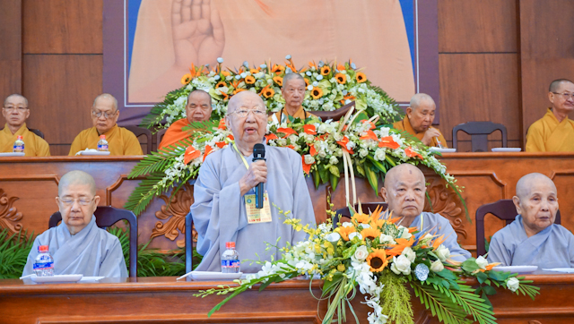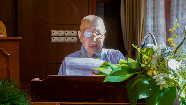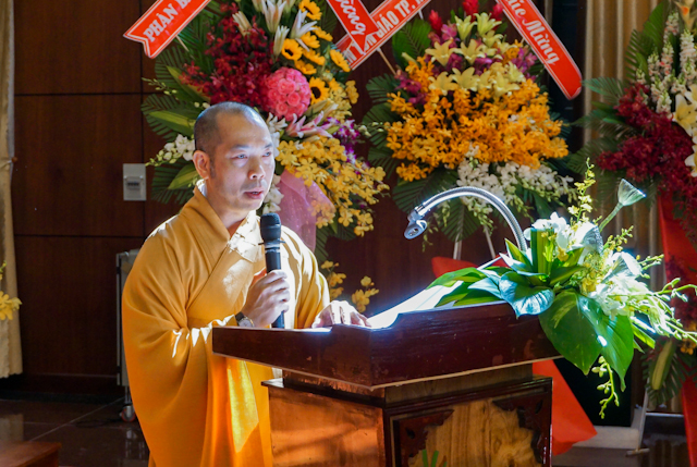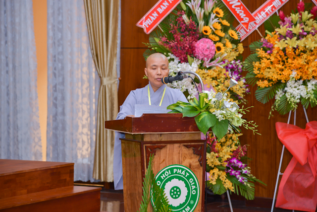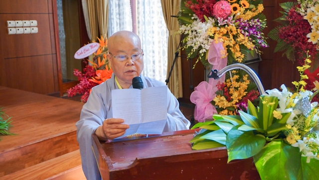 Ni Trưởng Thích Nữ Như Châu – Trưởng Phân ni giới GHPGVN TP.HCM đối trước chư tôn đức lãnh đạo phát biểu nhận nhiệm vụ.