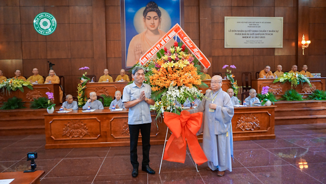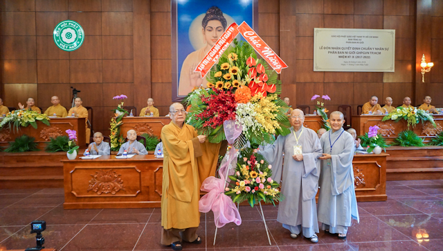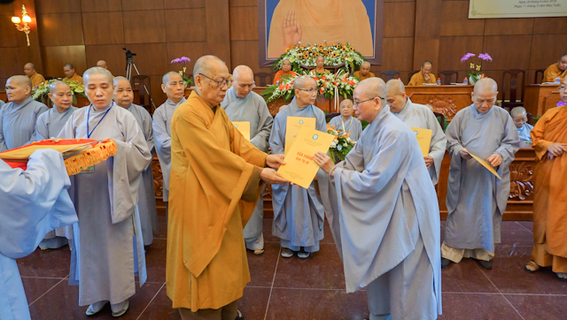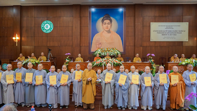 HT.Thích Thiện Tánh và HT.Thích Thiện Tâm trực tiếp trao quyết định chuẩn y thành phần nhân sự đến chư tôn đức Ni, Phân ban Ni giới PG TP.HCM nhiệm kỳ 2017 – 2022.