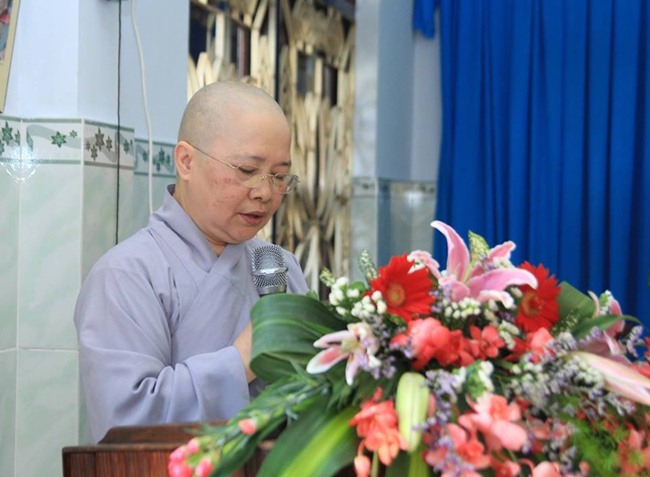HT.Thích Như Tin – Phó Ban Trị sự GHPGVN Tp.HCM thay mặt chư tôn Ban thường trực sách tấn và tán thán tinh thần phụng sự đạo pháp của chư ni thành phố.