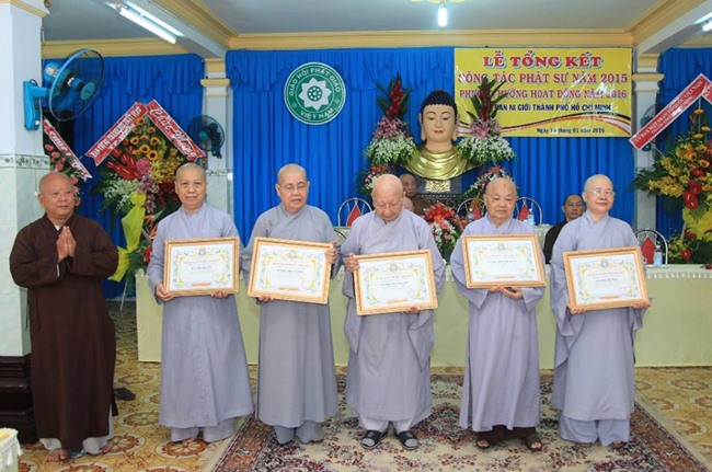 Trong buổi lễ này, Ni giới thành phố nhận được bằng tuyên dương công đức từ GHPGVN TP.HCM, đồng thời nhận nhiều lẳng hoa chúc mừng từ các ban ngành, các cấp lãnh đạo phật giáo TW, đia phương, các cấp chính quyền TP.HCM và Q.11.
