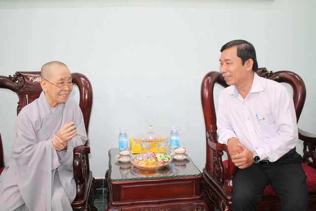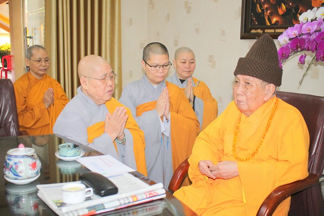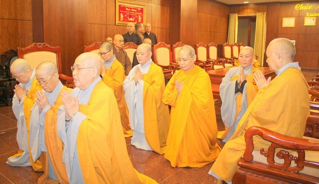 Tiếp đón phái đoàn PBNGTW, chư tôn đức lãnh đạo cùng các cấp chính quyền ân cần gửi lời chúc sức khỏe, Phật sự viên thành đến Phân ban Ni giới Trung ương.