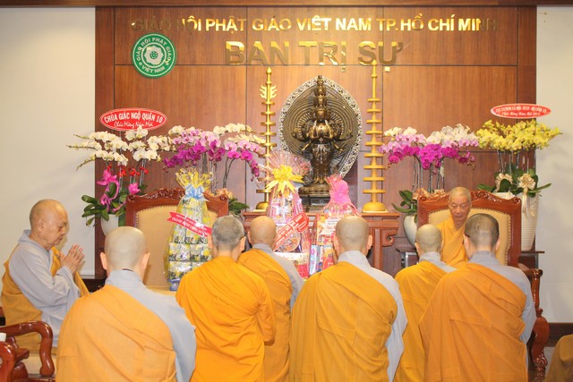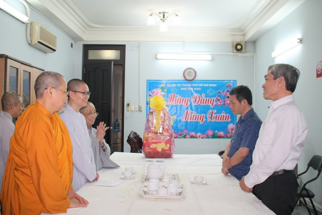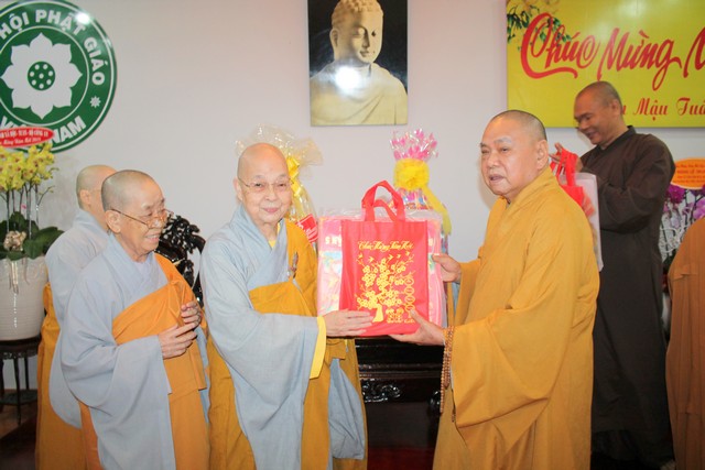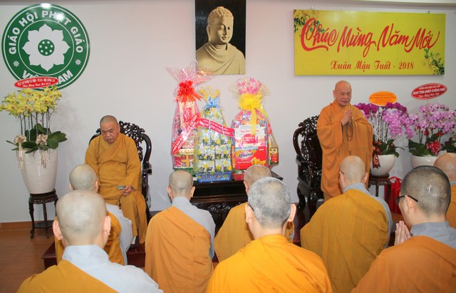 Phái đoàn đã đến chúc tết Mậu Tuất 2018 tại: Chùa Vĩnh Nghiêm (Q3), Văn phòng II.TWGH (Q3), Ban trị sự GHPGVN.TP.Hồ Chí Minh (Q.10), Chùa Phước Hải (Q.10), Tổ đình Huê Lâm (Q.11), Cục An ninh xã hội – Bộ CA (Q.1), Công An TP.HCM (Q.1), Mặt trận tổ quốc (Q.1), Ban Tôn giáo TP.HCM (Q.3), Hội Liên hiệp Phụ Nữ (Q.1).