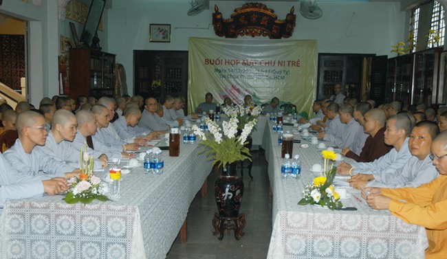 Dưới sự chủ tọa của Ni trưởng Thích Nữ Tịnh Nguyện – Phó trưởng ban thường trực Phân ban Ni giới Trung Ương, ngoài ra có hơn 100 vị Ni trẻ đại diện cho chư Ni trẻ tại các tỉnh thành trong cả nước về tham dự buổi họp.