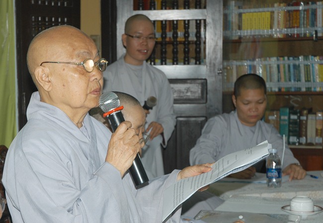 Sau phần phát biểu khai mạc đầy trăn trở và tâm huyết mong đợi giới trẻ dấn thân phụng sự của Ni trưởng Thích Nữ Tịnh Nguyện, SC Thích Nữ Huệ Đức (Phó thư ký Phân ban Ni giới Trung Ương) thay mặt chư tôn đức Ni triển khai và điều phối nội dung cuộc họp.