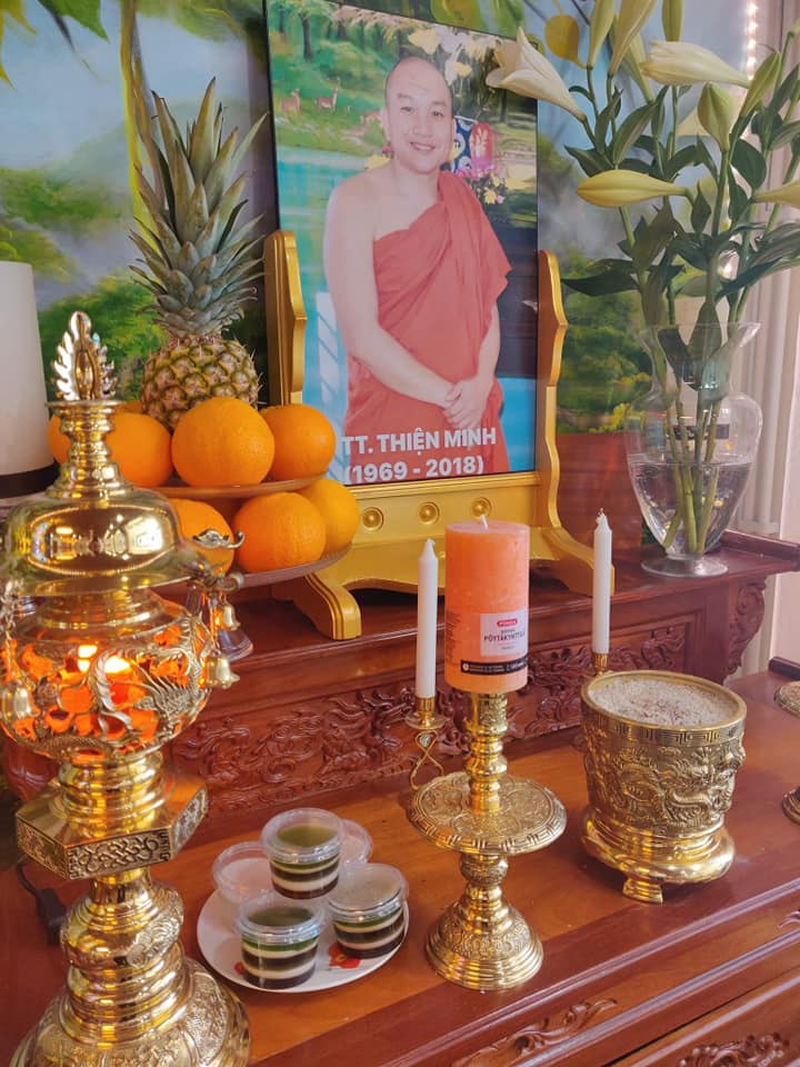 Tham dự và điều hành trực tuyến từ Việt Nam, Đại đức Minh Tấn – Trụ trì chùa đã có lời đạo từ và cảm niệm công đức của quý Phật tử phát tâm hùn phước, cúng dường các loại thực phẩm và tham gia tổ chức buổi lễ.