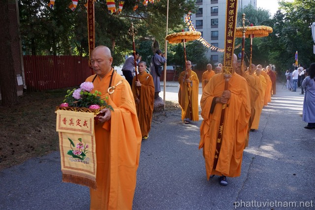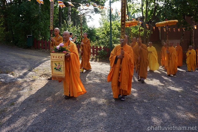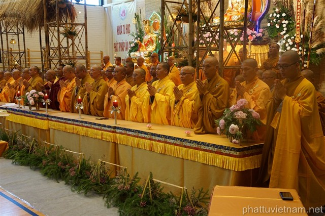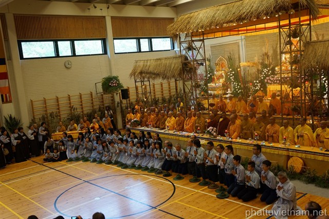 Dưới sự chứng minh của chư Tôn đức: Hoà Thượng Thích Minh Tâm- Chủ tịch GHPGVNTN Châu Âu, HT. Thích Như Điển – Tổng Thư Ký GHPGVNTN Âu Châu, HT. Thich Tánh Thiệt, Phó Chủ tịch GHPGVNTN Âu Châu, HT. Thích Thắng Hoan, Chủ tịch GHPGVNTN Châu Mỹ, HT. Thích Nguyên Siêu, Tổng Thư Ký GHPGVNTN Châu Mỹ, TT. Thích Hạnh Bảo, Trưởng Ban tổ chức Khoá Tu Học Phật Pháp Âu Châu kỳ thứ 25, Trụ Trì Chùa Liên Tâm… buổi lễ đã diễn ra thành công tốt đẹp.
