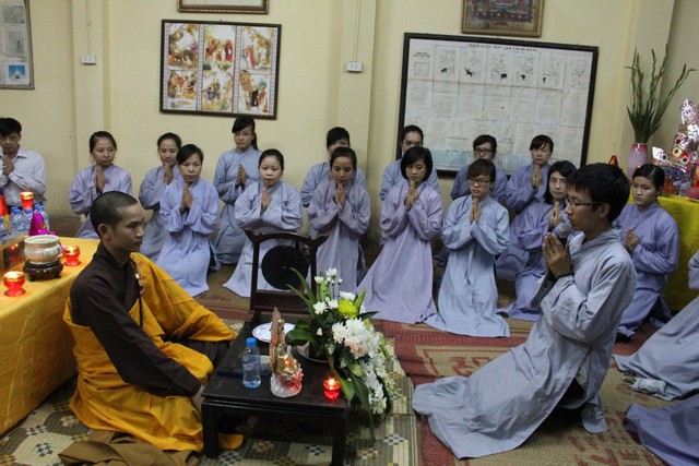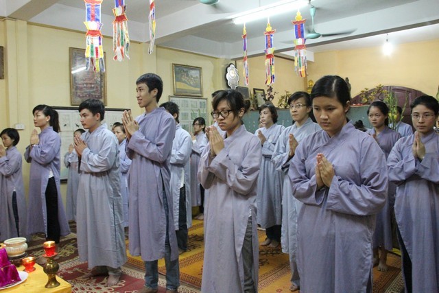 Chứng minh buổi lễ có HT Thích Thanh Hưng – Phó Ban Hương dẫn Phật tử TW – Trụ trì chùa Thiên Phúc; cư sĩ Diệu Nhân – Nguyễn Thị Xuân Loan – Ủy viên HĐTS GHPGVN – Phó thư ký Ban Hướng dẫn Phật tử TW; ĐĐ Thích Quảng Hợp và đông đảo các thành viên trong CLB TTN Phật tử Quán Sứ cùng về tham dự.