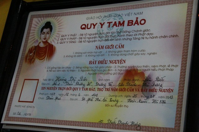 Các thành viên tham dự khóa quy với tâm thành kính đối trước tam bảo, nguyện một lòng một dạ quy y Phật, Pháp, Tăng, tinh tấn tu học trên con đường giải thoát. Cuối buổi lễ Hòa thượng trao tận tay điệp quy tới các thành viên tại buổi lễ.