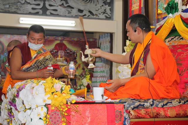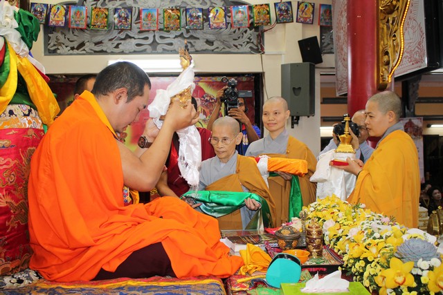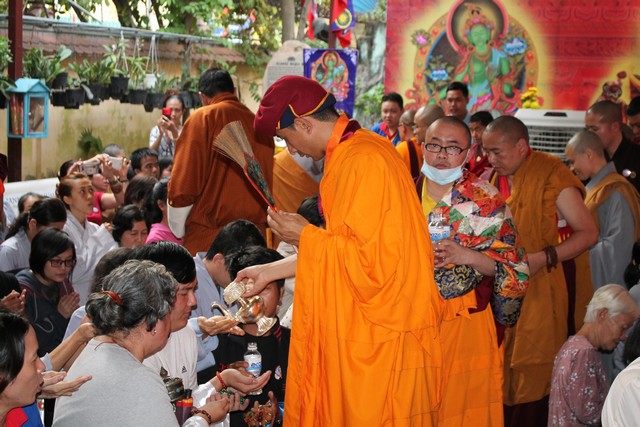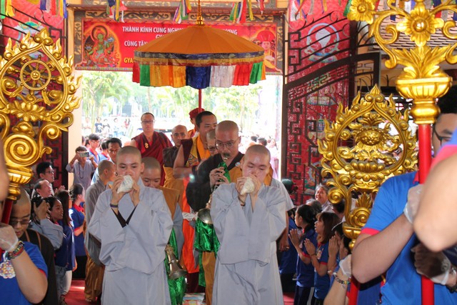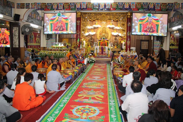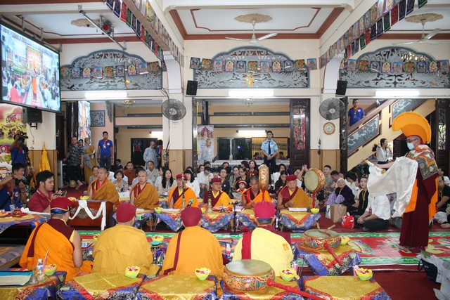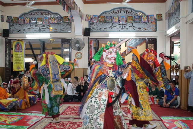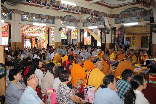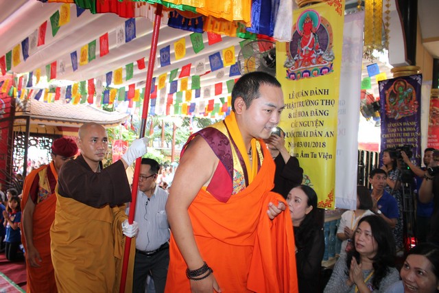 Sáng 01/01/2018 (15/11 Đinh Dậu): Sau vũ điệu hộ pháp kim cương, Nhiếp chính vương Gyalwa Dokhampa quang lâm pháp hội. Lời đầu tiên, Ngài gửi lời chúc đến toàn thể nhân dân Việt Nam luôn mạnh khỏe, cuộc sống an bình, ấm no hạnh phúc! Ngài rất vui mừng sau ba năm trở lại Việt Nam, qua chuyến thăm nhân dịp đầu năm 2018, Ngài hy vọng tất cả những ai đang tham dự pháp hội luôn tinh tiến – an lạc – hành trì giáo pháp miên mật, thông qua đó Ngài cầu nguyện điều tốt đẹp cho tất cả mọi nơi trên thế giới trong ngày đầu năm 2018.