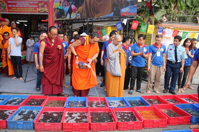 Chiều: Chia sẻ về đề tài phóng sinh, Ngài mong rằng mỗi chúng ta nên biết yêu thương tất cả sinh mạng hiện hữu như yêu thương chính mình! Sau nghi thức phóng sinh, cầu nguyện quốc thái dân an. Kết thúc ngày đầu tiên của pháp hội, Ngài mong rằng khi thực hành bất kì pháp môn nào, hành giả tu sửa tâm tình của mình, giữ thân khẩu ý thanh tịnh, thực hành các việc lành và tin sâu nhân quả nghiệp báo.
