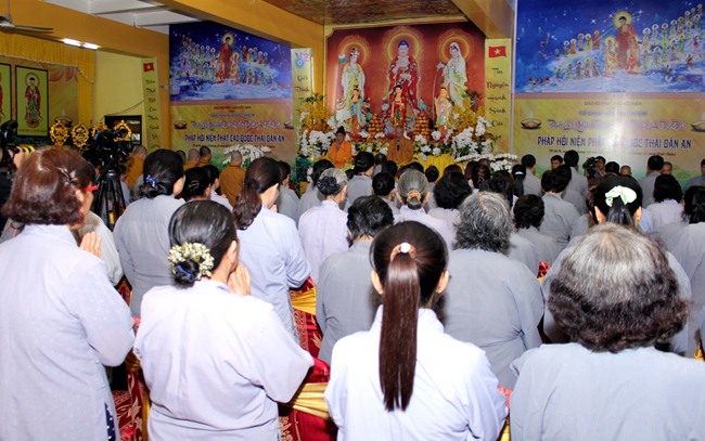 Tôi mong trong Pháp hội này, quý vị cố gắng niệm Phật đến nhất tâm bất loạn, tức đạt đến chổ tâm hoàn toàn thanh tịnh, loại trừ tất cả những phiền não nhiễm ô ra khỏi tâm mình, để rồi mỗi người chúng ta đều trở hành hoá thân của Đức Phật A Di Đà, xây dựng một xã hội an lành ở tại thế giới này và tại thành phố này mà ta gọi là nhân gian tịnh độ.