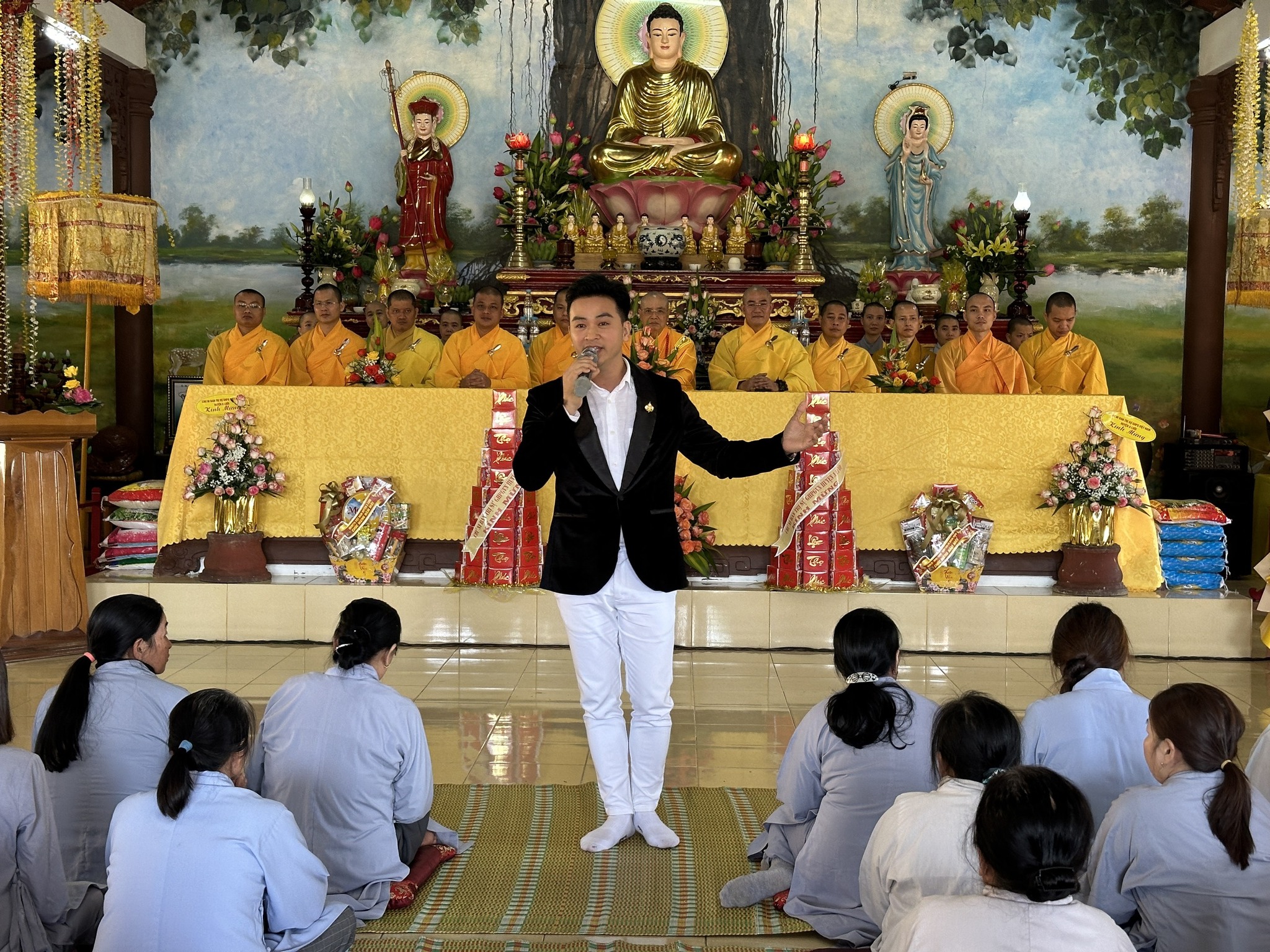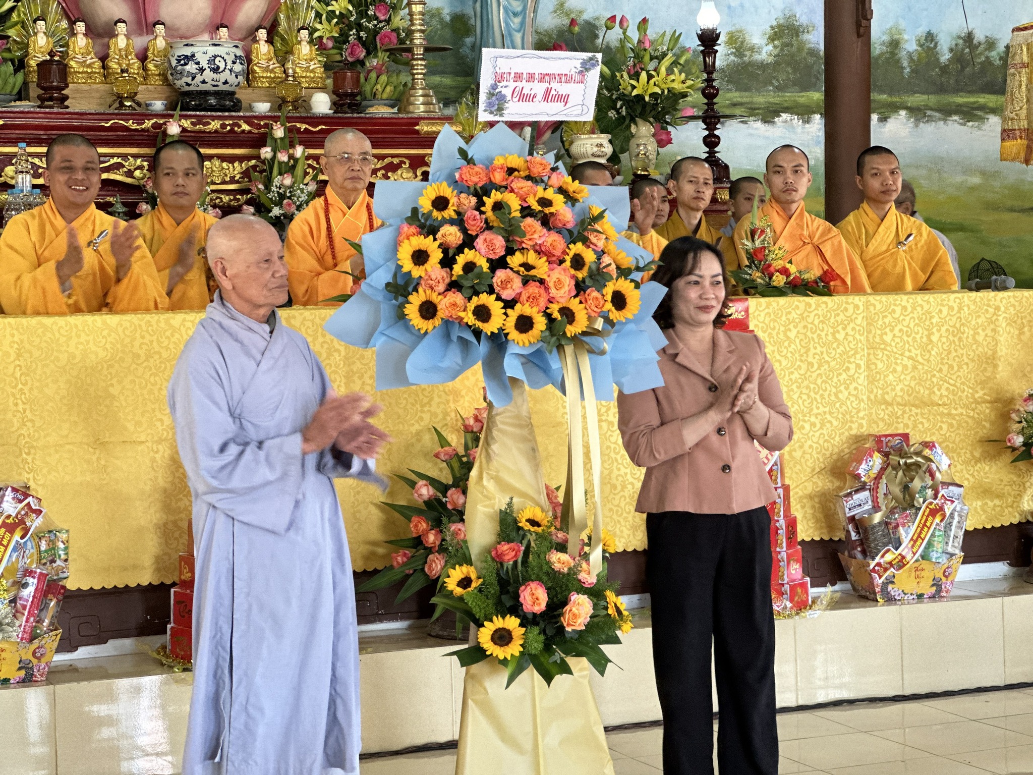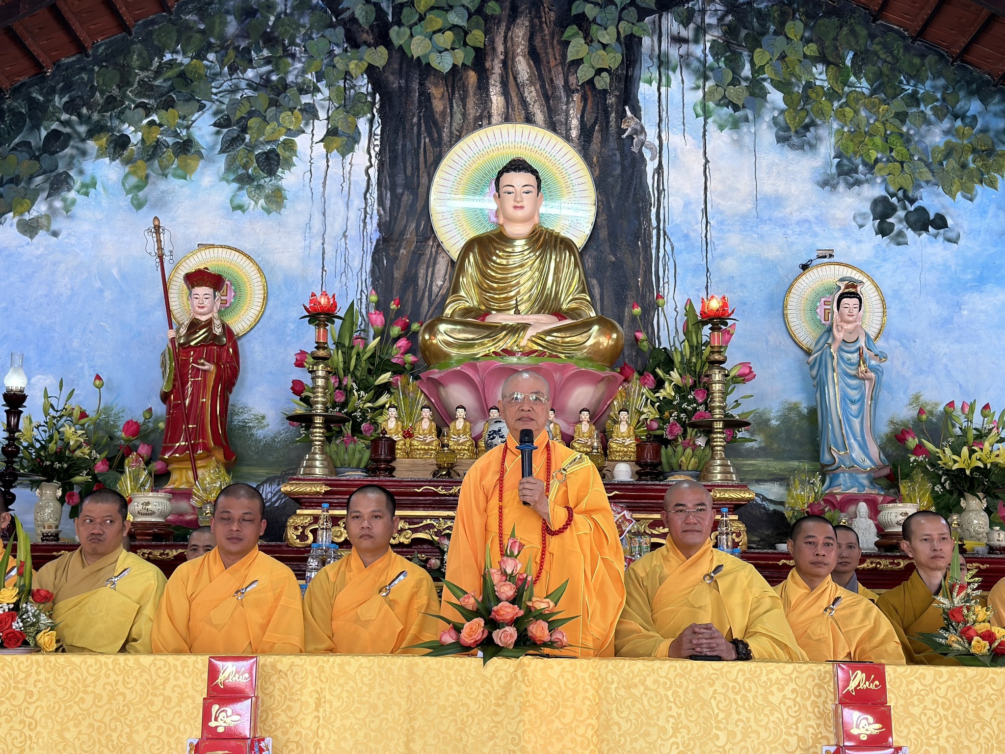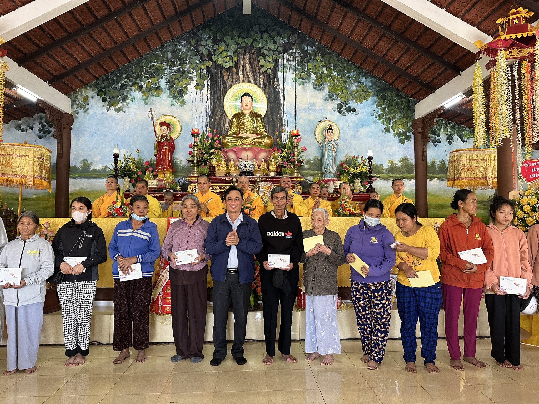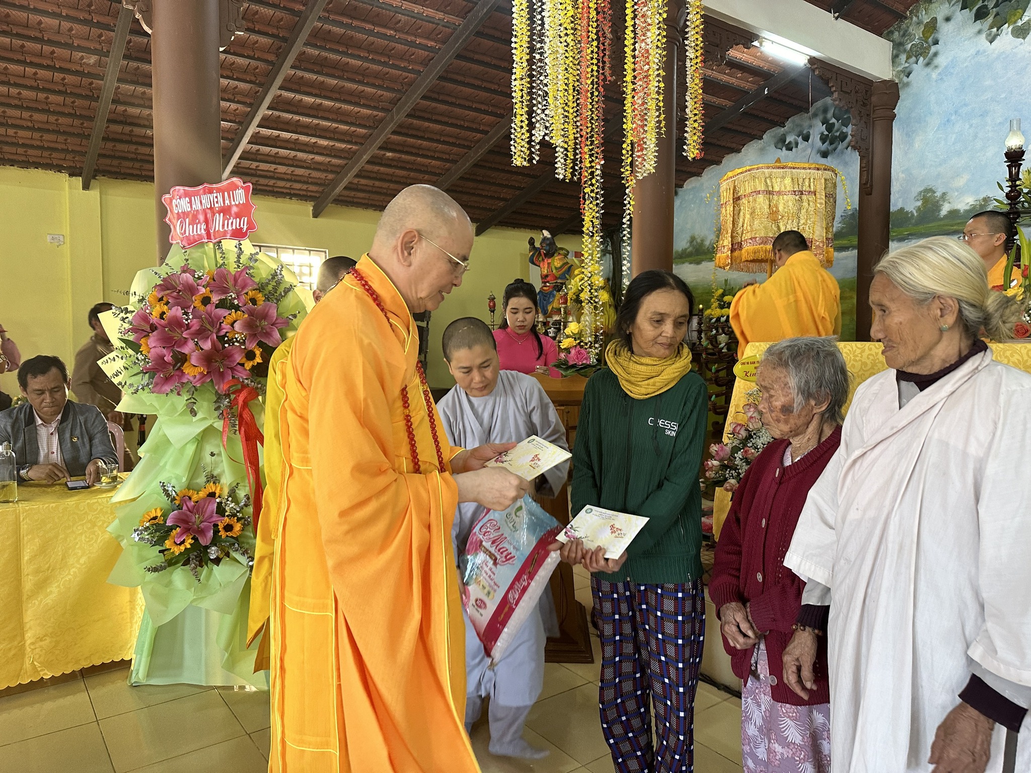 Hòa thượng chia sẻ đến quý đạo hữu Phật tử. Tại Pháp hội, Hòa thượng Chứng minh Thích Huệ Phước cùng chư Tôn đức đã tặng quà đến các hộ gia đình bà con Phật tử nghèo, có hoàn cảnh khó khăn trên địa bàn.