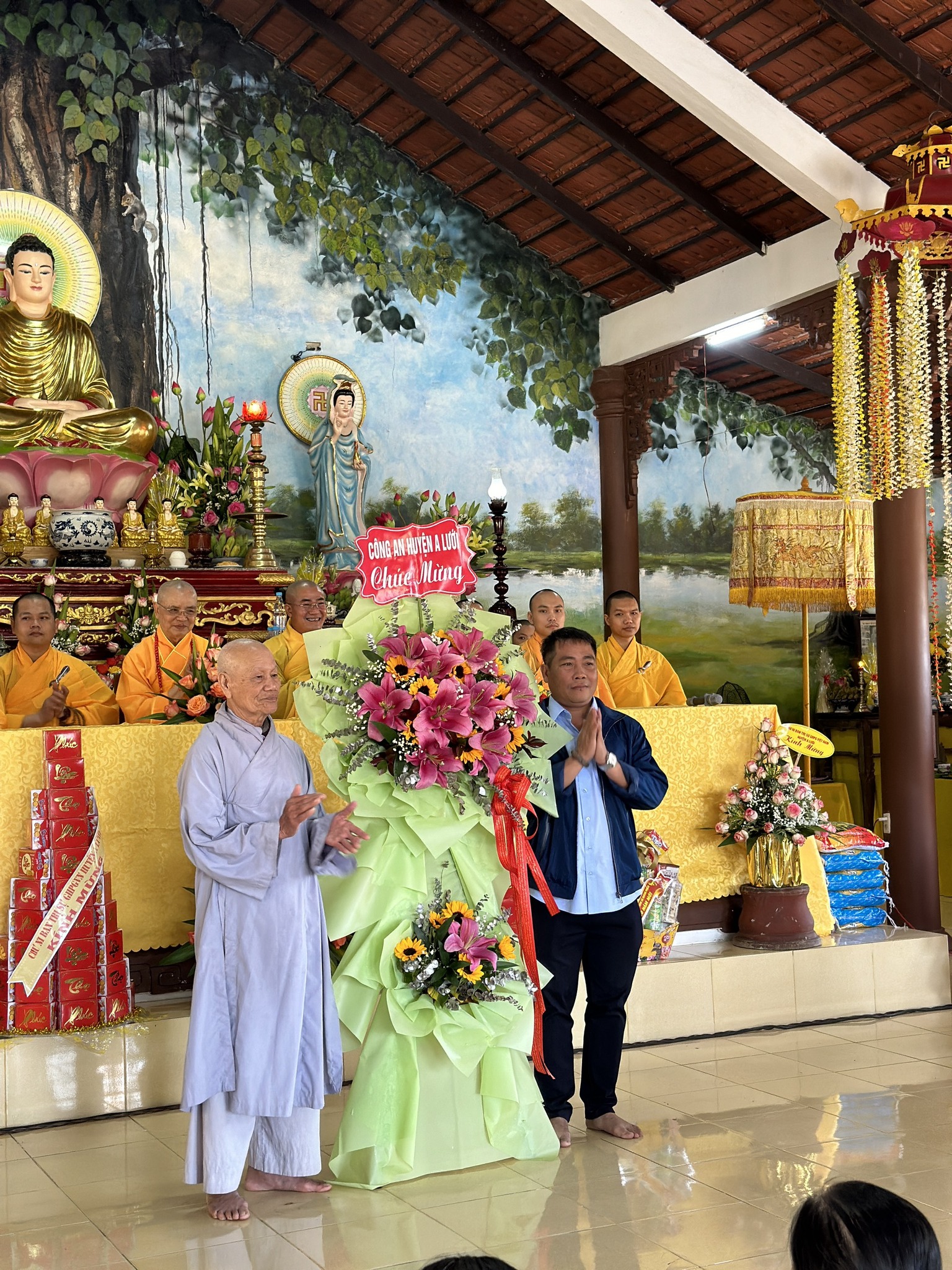 Phát biểu và ban đạo từ tại buổi lễ, HT.Thích Huệ Phước có lời cảm ơn đến lãnh đạo ban ngành các cấp đã luôn quan tâm giúp đỡ, hỗ trợ để các Phật sự tại địa phương A Lưới thành tựu viên mãn. “Quê hương yên bình hay không là hoàn toàn xuất phát nơi mỗi một con người chúng ta, từ nhận thức cho đến hành vi, ứng xử như thế nào cho đúng pháp để mang lại sự an lạc, hạnh phúc”.