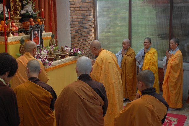 Từ hai ngày trước đó thầy Thiện Niệm đã cùng với quý Phật tử công quả thiết bàn thờ với long vị, di ảnh, tàng lọng…đầy đủ, trang nghiêm.