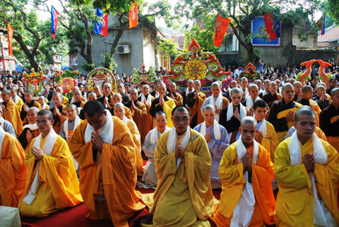 Đón đoàn tại sân bay Nội Bài về chùa Quang Ân (Hà Nội) có chư tôn đức BTS thành hội Phật giáo Hà Nội và hàng ngàn tăng ni Phật tử thủ đô Hà Nội.