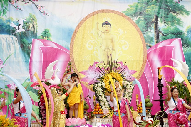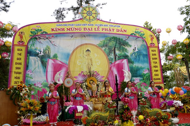 Tiếp theo, các em Phật tử hát cúng dường Đức Bổn Sư nhân ngày Phật Đản sanh. ĐĐ.Thích Thiện Quang, Trưởng BTS GHPGVN huyện Bắc Tân Uyên, Trưởng BTC đọc diễn văn kính mừng Phật đản của Hòa thượng Chủ tịch HĐTS GHPGVN.