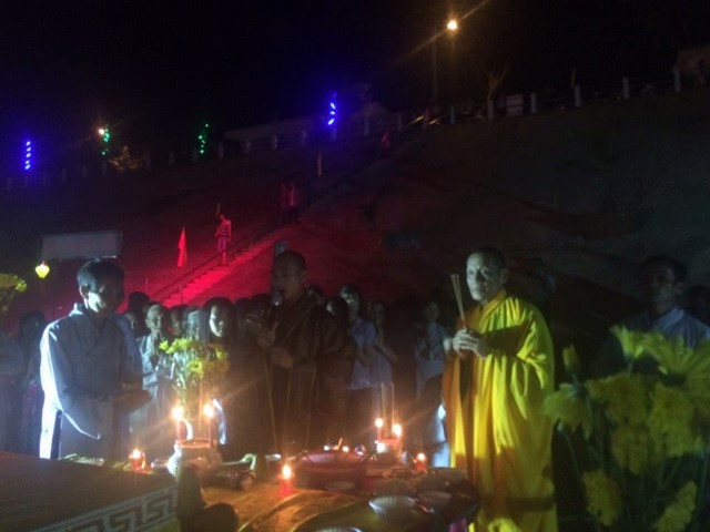 Hơn 2 nghìn hoa đăng và 1 tạ cá các loại được thả giữa dòng sông theo tiếng niệm Phật, chú nguyện của Chư Tôn đức và sự thành tâm của phật tử. Những chiếc đèn hoa được thắp sáng đẹp lung linh bồng bềnh nổi trên mặt nước, mọi người đều đồng cậu nguyện quốc thái dân an, tưởng nhớ đến anh hùng liệt sĩ, đồng bào tử nạn, bà con nhiều đời nhiều kiếp cầu mong được siêu thoát…