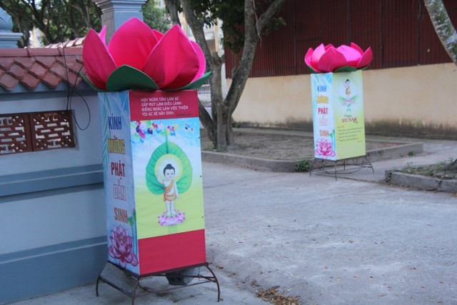 Dọc một số trục đường chính đi vào cổng bệnh viện Phong và chùa Văn Môn, cờ Tổ quốc, cờ Phật giáo tung bay phấp phới, xen kẽ với các băng rôn, biểu ngữ mừng Phật đản. Hình ảnh đức Phật đản sinh cùng những lời dạy vàng ngọc của Phật được in ấn, trang trí trước cổng chùa, kết hợp với các bông sen to nhỏ trên cạn, dưới nước, tạo nên không khí rộn ràng cho ngày hội lớn.