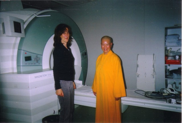 Ni Sư Tường Liên Viện Trưởng Thiên Viện MDQ TP Houston đang tham quan máy Đo Hoạt Động Não tại Toebingen/Germany